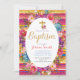 Gold Baptism Christening Invitation with colourful Mexican Fiesta style.