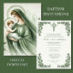 Featuring a beautiful Catholic custom designed Irish Baptism Christening invitations with a deep green Celtic Cross and beautiful roses border. On the front is an image of the Blessed Mother Mary holding the Baby Jesus accented with green shamrocks.