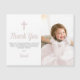 Thank your family and friends for attending your baby girl's baptism with a photo of your child. The pink design features white polka dots on a pink watercolor background on the back of the card. All of the text can be customised, including your child's name and the message.