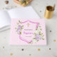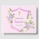 Baptism crest pink flowers girl guest book