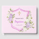 Baptism crest pink purple flowers girl guest book