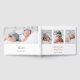For an elegant baptism, gender neutral. A chic white background. Personalise and add 3 vertical sized photo on the front, the name of the child and the date of the baptism. Black and golden letters.