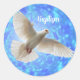 This baptism sticker is shown with a photo print of the beautiful dove.