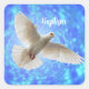 This baptism sticker is shown with a photo print of the beautiful dove.