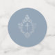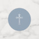 On the smallest confetti, there is a faux silver foil cross on a dusty blue background on both sides.