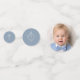 On the biggest confetti, on one side, under the crest with the cross, there is silvery grey text: the name, occasion and date. On the other side, there is a placeholder baby boy photo.
