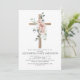 Daughter's Dusty Pink Rose and Sage Green Floral and Eucalyptus - Gold Foil Cross Botanical Greenery Watercolor Christian Religious Baptism Invitations.