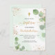Baptism eucalyptus greenery glitter cross script invitation postcard