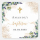 For an elegant baptism, gender neutral. A chic white background. A chic white background. Decorated with green watercolored eucalyptus leaves, sprigs, greenery, faux gold leaves and golden glitter spots. Personalise and add the name of the child and a date. Black and golden letters.