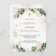 Baptism eucalyptus greenery gold cross script invitation postcard