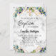 Marble stone print as background decorated with eucalyptus greenery and golden leaves. Personalise and the child's name and ceremony details.
