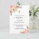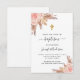 A white background. Decorated with rose gold and blush pink florals, roses, pampas grass and a golden cross. Personalise and add a name and details.