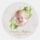 Baptism Girl Photo Floral White Lilies Gold Marble Classic Round Sticker