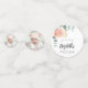 A chic white background decorated with a rose gold, blush flower, rose and eucalyptus greenery. Personalise and add a photo, date, name.