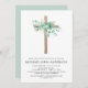 Sage Green Boy's Eucalyptus and Wooden Cross Botanical Greenery Watercolor Christian Religious Baptism Invitations.