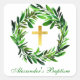 Baptism Greenery Faux Gold Cross Foliage Wreath Square Sticker