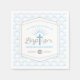 Halo and cross script text baptism blue and grey baby boy custom baptism napkins. Personalise with your own baptism details. Designed by www.mylittleeden.com