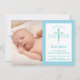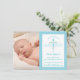 This modern Christening, Baptism invitation features a blue and green watercolor style cross and photo area. It can be customised for your child's special Christian occasion.