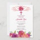 VG Invites girl baptism invitation features lush roses pretty pink, orange, and purple watercolors that frame your fiesta party details. A complimentary vibrant pink colour adorns the back of your invitation. A botanical yet sophisticated choice for spring, summer, fall and winter baptisms, first holy communions, bautismo, bautismo confirmacion or confirmations. Designed by Victoria. To see more visit www.zazzle.com/vginvites