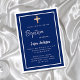 Baptism navy blue white boy gold cross luxury invitation