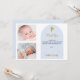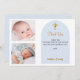A modern and elegant baptism thank you card. A chic white and light blue background decorated with a faux gold cross and an arch frame. Personalise and add 2 photos of the boys , thank you note and names.