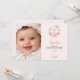 Baptism pink florals bow photo girl thank you card