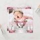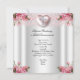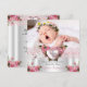 Elegant Pretty Girl Baptism Pink Silver White Lace Photo Jewel Heart Cross. With pink Roses floral flowers, Christening Baptism Invitation. Customise with your own details and Photo. Birth Announcement