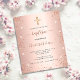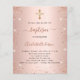 A rose gold faux metallic looking background. Decorated with rose gold, pink faux glitter dust. Personalise and add a name and details. The name is written with a hand lettered style script