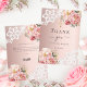 Baptism rose gold pink floral lace cross thank you card