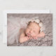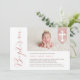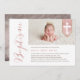 Baptism invitation featuring a banner with a faux shiny blush and gold texture and Baptism in a stylish script with the same blush texture. Add a photo to the front and back.