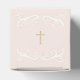 This beautiful and elegant scrolled invitation is perfect for your child’s Baptism. The accents of this design consist of elaborate scrolls with gold shadows and a gold cross. The background colour is a delicate pink. Check out the matching accessories, gifts, party favours and stationery.