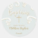 Baptism Scrolls in Powder Blue and Gold Classic Round Sticker