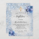 Baptism silver blue boy floral budget invitation