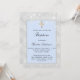 Faux silver and light blue coloured background decorated with faux silver glitter sparkles. Personalise and add a name and the details. Black coloured letters.