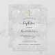 A modern, elegant and minimalist baptism invitation for both boys or girls. Faux silver looking background decorated with faux glitter dust. Personalize and add a name and details. Black colored letters.