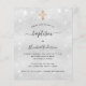 A modern, elegant and minimalist baptism invitation for adults. Faux silver metallic looking background decorated with faux glitter dust. Personalise and add a name and details. Black coloured letters.