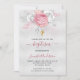 For an elegant baptism, celebrating a baby girl. A faux silver metallic looking background. Decorated with pink and white florals, roses and a faux gold cross. Personalise and add the name of the child and details. Black and pink letters.