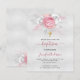 Baptism silver pink florals girl invitation