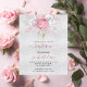 For an elegant baptism, celebrating a baby girl. A trerndy faux silver metallic looking background. Decorated with pink and white florals, roses and a faux gold cross. Personalize and add the name of the child and details. Black and pink letters.