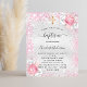 A modern, elegant baptism, celebrating a baby girl. Faux silver metallic looking background decorated with pink faux glitter dust and a golden cross. Personalise and add a name and party details. Black coloured letters.