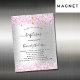 Baptism silver pink glitter girl invitation magnet