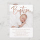 This simple and stylish Baptism invitation features two photos of your baby, with elegant modern faux rose gold script typography.