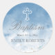 very elegant religious event sticker with sky blue watercolor background and a combination of elegant script font and serif for all information. Check our store for more matching products from this collection