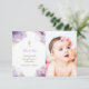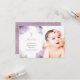 Baptism thank you purple watercolor flowers invitation