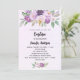 Baptism violet flowers greenery cross invitation