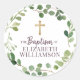 Baptism Watercolor Foliage Botanical Cross Photo Classic Round Sticker