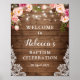 Rustic Floral String Lights Baptism Welcome Sign Poster.