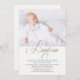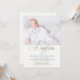 An all white baptism invitation that's perfect for either gender. Just add your favourite photo. To emphasize the gender, simply change the colour of the name to blue or pink. The cross can be dragged to any location, make larger or smaller or eliminated.