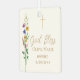 This floral Baptism photo keepsake ornament features wildflowers and a cross with stylish gold script typography on a soft cream background.