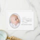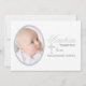 The white background has the word "Baptism" and is embellished by an intricate silver cross. The oval photo window is also framed in silver. Coordinates beautifully with our Baptism Word Silver Photo Invitation.